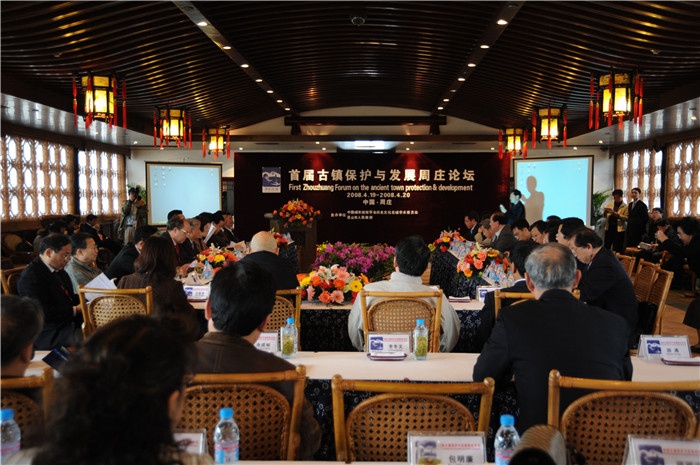 首届古镇保护与发展(周庄)论坛,共同审视国内外古城、镇、村的保护与发展所面临的挑战,共同讨论了为增进本地区相互依存和经济整合并具有中国特色的古城镇保护可持续发展道路的重要性。